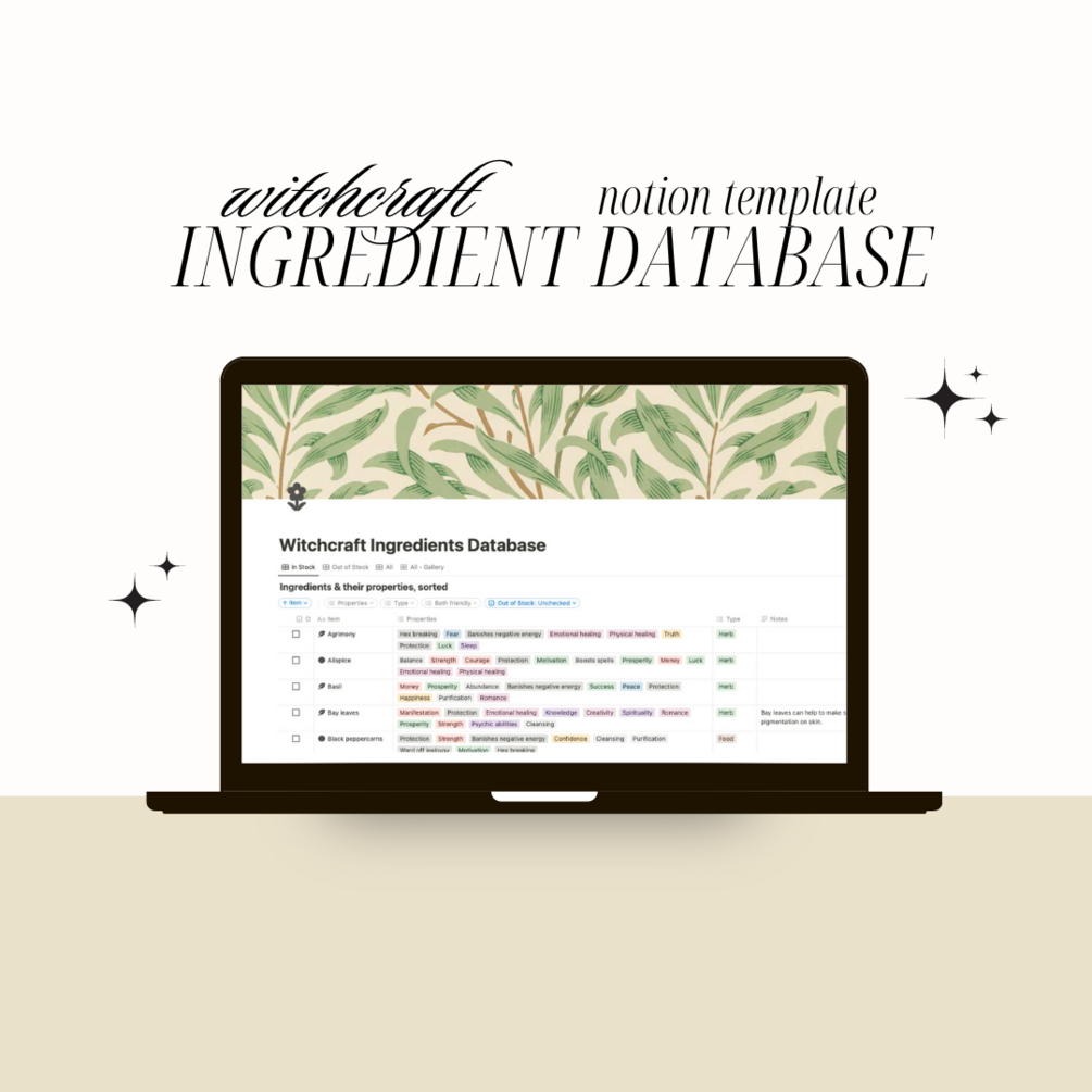 Tags: witchcraft, witchy, planner, journal, witchcraft notion template, spellbook, grimoire, notion grimoire